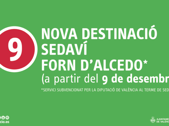read moreVALÈNCIA, DIVENDRES 29 DE NOVEMBRE DE 2019 La prolongació de la línia 9 permetrà connectar directament al veïnat de Forn d’Alcedo amb el centre i l’Hospital Doctor Peset El municipi…