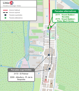 Modificación de recorrido de la línea 24 en El Palmar los sábados, domingos y festivos.
